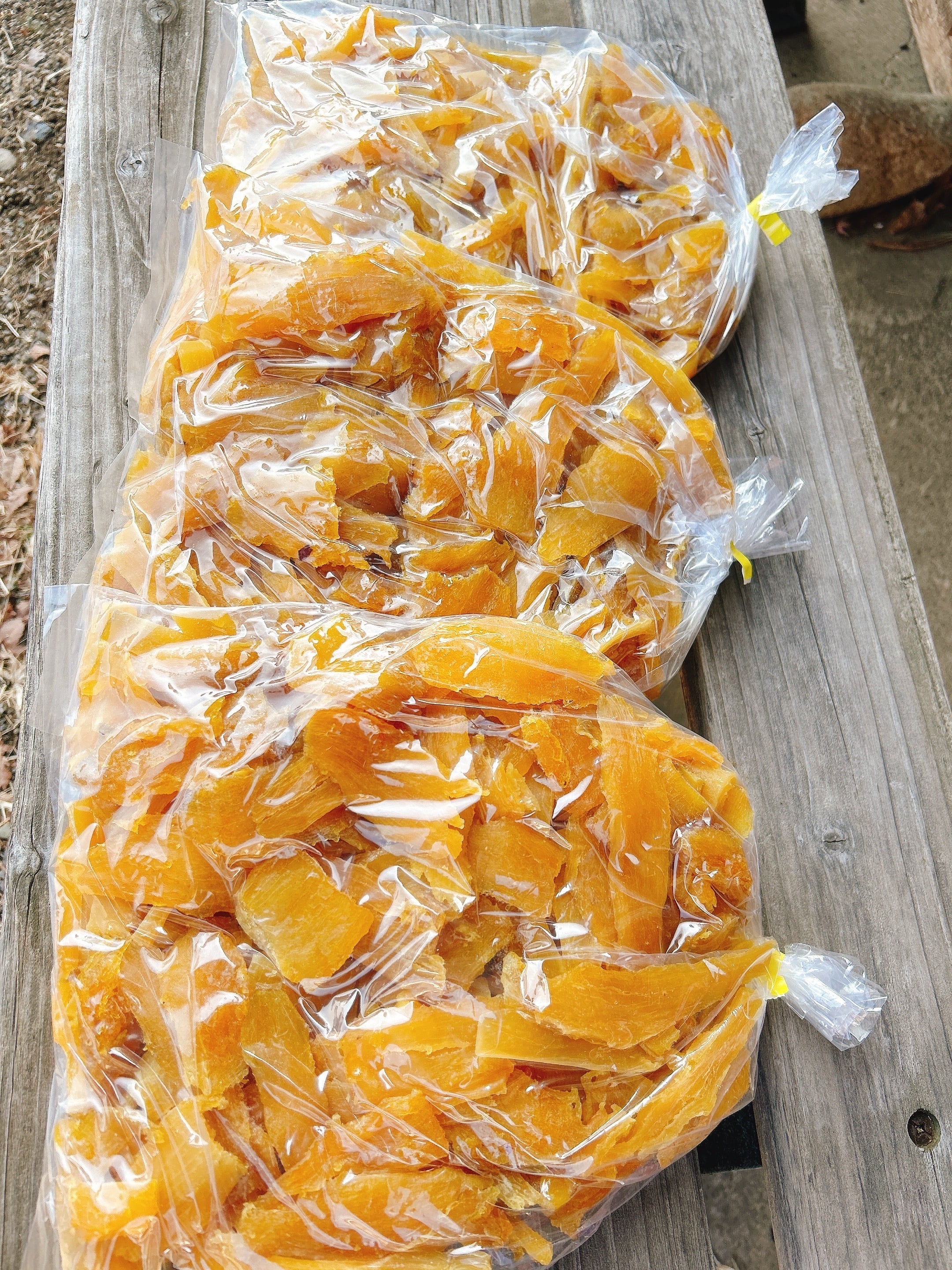 製品としては形が揃わない部分ですが、味は通常の平干しと同じく、自然な甘さと柔らかい食感が魅力。細かいサイズ感なので、そのまま手軽に楽しめます。