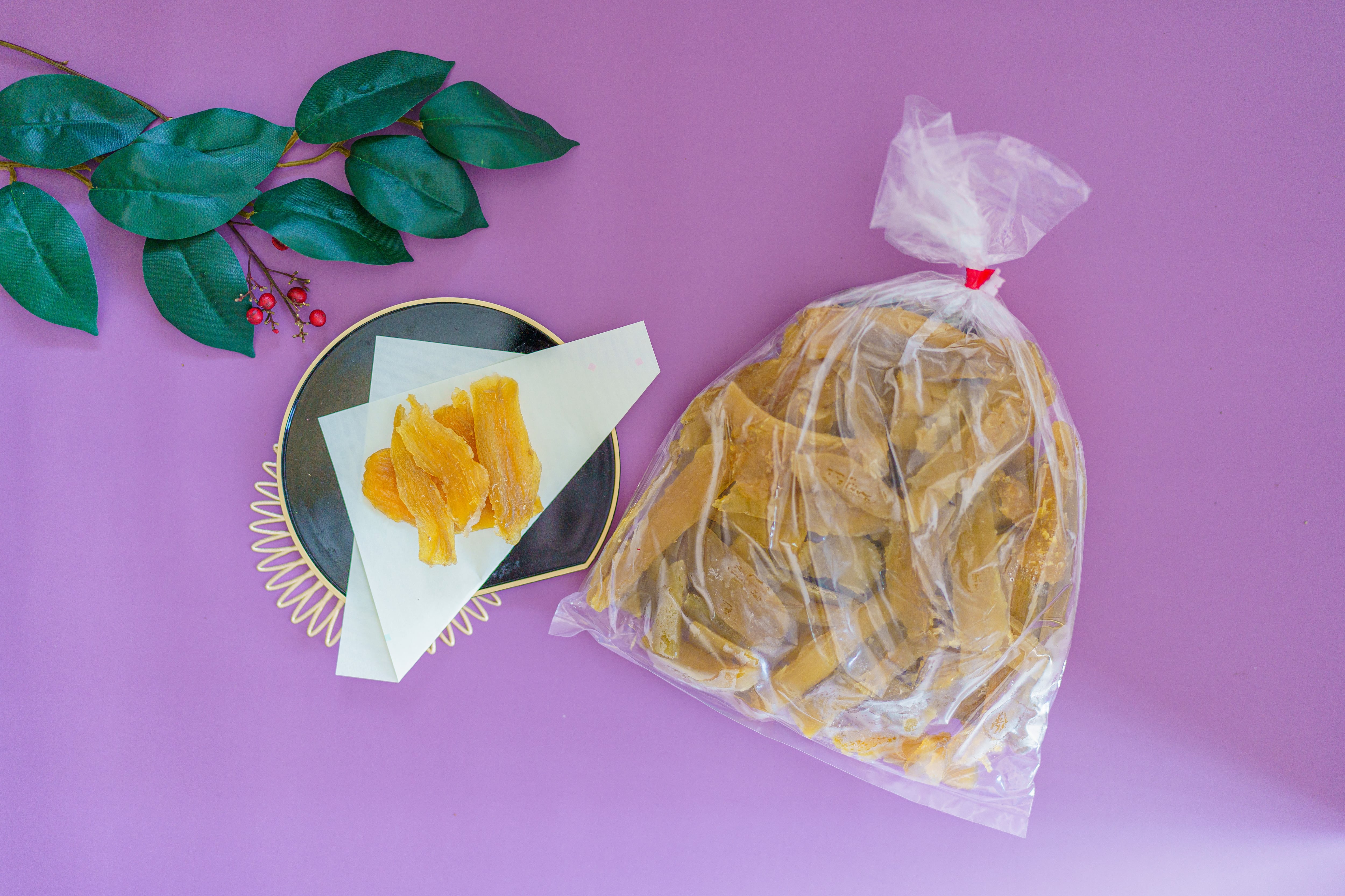 製品としては形が揃わない部分ですが、味は通常の平干しと同じく、自然な甘さと柔らかい食感が魅力。細かいサイズ感なので、そのまま手軽に楽しめます。